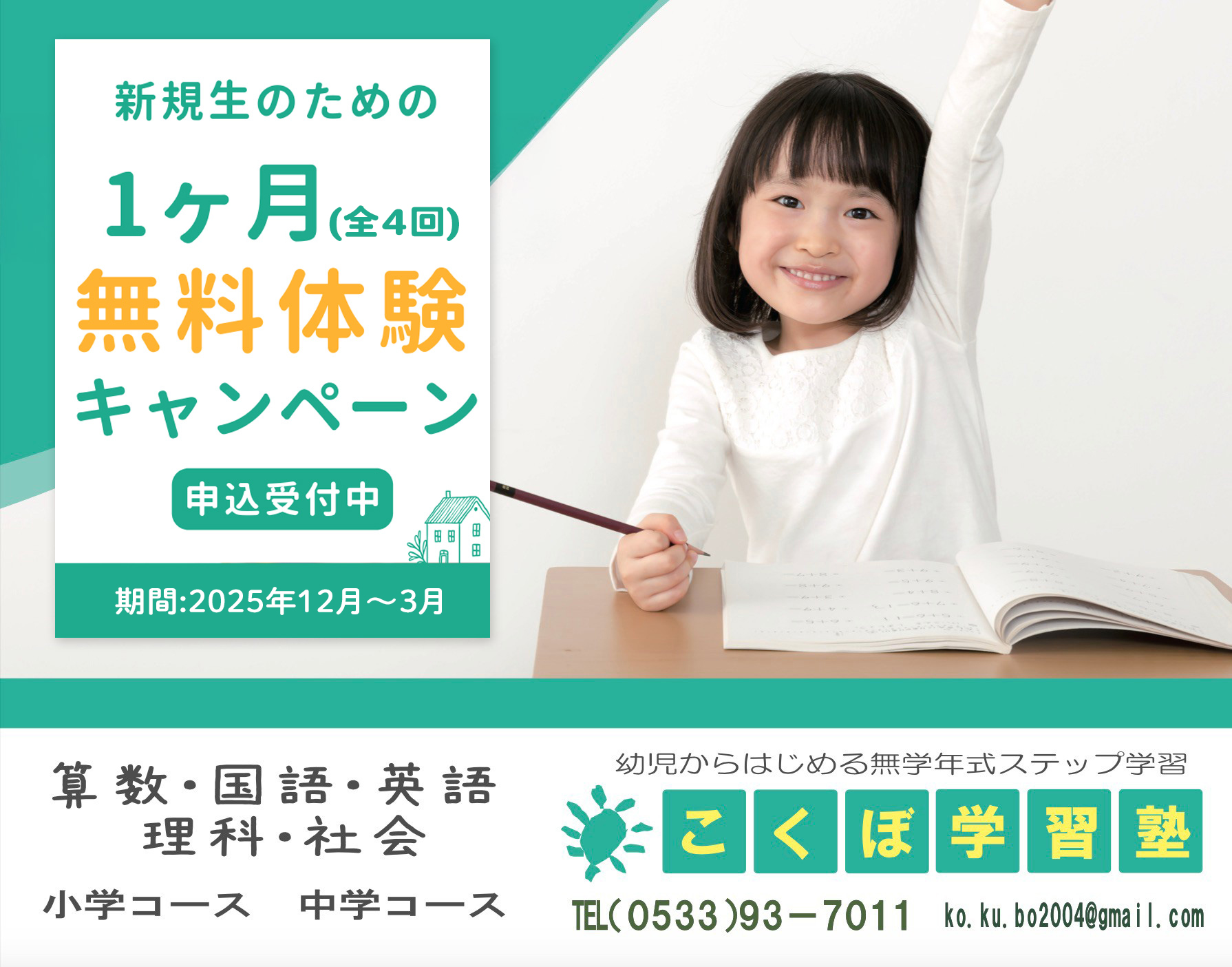 こくぼ学習塾では新規生のための【無料体験キャンペーン】を開催❗️❗️